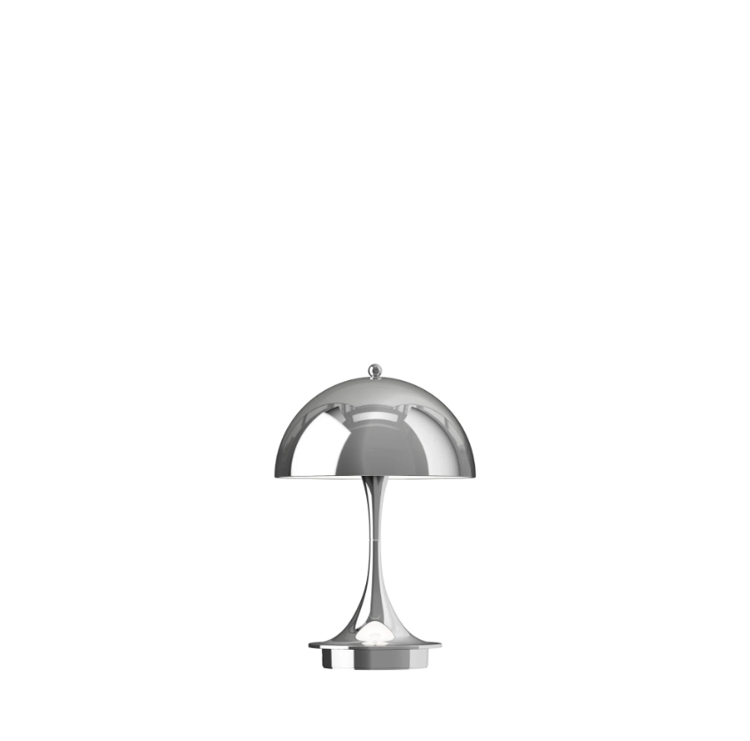 The iconic Pantello lamp, inspired by Verner Panton, is reinvented as a compact, wireless version designed for both indoor and outdoor use thanks to its IP44 rating.